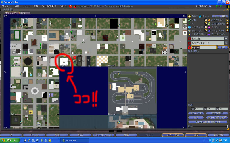セカンドライフの地図は更新に1週間ぐらいかかるのがこれでわかりました。だから今載っている地図は古い情報で今現在はないものがあるかもしれませんね。