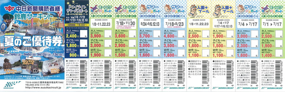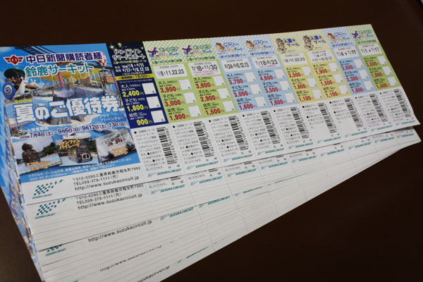 いつもお世話になっている中日新聞さんから鈴鹿サーキットの「夏のご優待券」