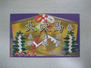 2009年12月23日 / 最終更新日 : 2009年12月23日 ビーエル支配人 支配人ブログ 大穴馬乗車券 三岐鉄道北勢線では、「大泉駅」、「穴太駅」、「馬道駅」の3駅の頭文字を取った「大穴馬乗車券」を一枚400円にて販売。 詳しくはこちらをhttp://www.kankomie.or.jp/m_news_member/detail.php?id=2296