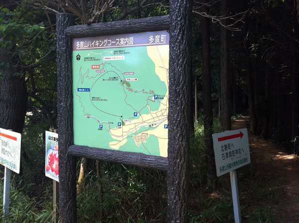 IMG_0242 無事多度山頂上に到着ここからが未踏の地に突入。ここから右側の矢印の方向の養老の方向に向けて尾根を走るコース。