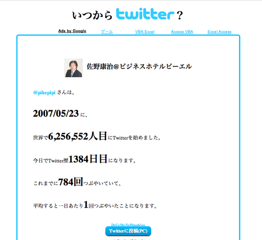 あなたはいつツイッターを始めましたか?初めてから今日で何日目ですか?